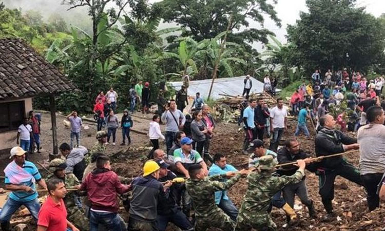 भूस्खलन में कम से कम 14 लोगों की मौत हो गई जबकि पांच लोग बुरी घायल हो गए।कोलंबिया के दक्षिण पश्चिम प्रांत कौका में भारी बारिश के बाद हुए भूस्खलन में कम से कम 14 लोगों की मौत हो गई जबकि पांच लोग बुरी घायल हो गए। भूस्खलन में बचाए गए पांच लोगों को अस्पताल में भर्ती कराया गया है। भूस्खलन की चपेट में आने की वजह से आठ घरों को नुकसान पहुंचा है जबकि पैन अमेरिकन हाईवे को बंद कर दिया गया है।