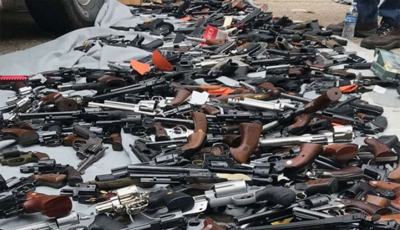 जखीरा:-लॉस एंजिलिस पुलिस विभाग के अधिकारी जेफ ली के अनुसार, ‘सूचना मिली थी कि कोई व्यक्ति संघीय लाइसेंस के बगैर हथियार बनाने का काम कर रहा है। इस सूचना पर विभाग के अधिकारी बुधवार को जांच-पड़ताल के लिए गए थे।’ शहर के बाहरी इलाके के जिस घर से हथियारों का जखीरा मिला है, वहां का एक फुटेज जारी किया गया है। इसमें घर के बाहर की सड़क पर सैकड़ों बंदूकें दिख रही हैं और अधिकारी उनका विवरण नोट कर रहे हैं। एल्कोहल, टोबैको, फायरआर्म्स एंड एक्सप्लोसिव्स ब्यूरो के प्रवक्ता जिंजर कोलबर्न ने बताया कि बरामद हथियारों में हैंडगन से लेकर रायफल तक हैं। इसके अलावा घर से हथियार बनाने के औजार भी बरामद हुए हैं। 2015 में मिली थीं 1200 बंदूकें:-वर्ष 2015 में लॉस एंजिलिस पुलिस ने एक घर से करीब 1200 बंदूकें, सात टन विस्फोटक और 23 लाख डॉलर की नकदी बरामद की थी। घर का मालिक एक गाड़ी में मृत मिला था। उस समय किसी घर से हथियारों की यह सबसे बड़ी बरामदगी मानी गई थी।