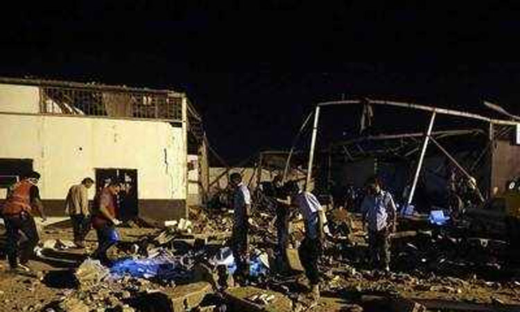 त्रिपोली में प्रवासियों के एक हिरासत केन्द्र पर आज तड़के हुए हवाई हमले में कम से कम 40 लोग मारे गए हैं लीबिया की राजधानी त्रिपोली में प्रवासियों के एक हिरासत केन्द्र पर आज तड़के हुए हवाई हमले में कम से कम 40 लोग मारे गए हैं। लीबिया के स्वास्थ्य मंत्रालय के प्रवक्ता के अनुसार त्रिपोली के तजूरा स्थित हिरासत केन्द्र पर हुए हमले में 80 लोग घायल भी हुए हैं। लीबिया में संयुक्त राष्ट्र शरणार्थी एजेंसी ने हिरासत केन्द्र पर हमले की निंदा की है। इसमें 616 प्रवासी और शरणार्थी रह रहे थे। लीबिया की सरकार ने इस हमले के लिए खलीफा हफ्तार के नेतृत्व वाली स्वयंभू लीबियन नेशनल आर्मी को जिम्मेदार बताया है।