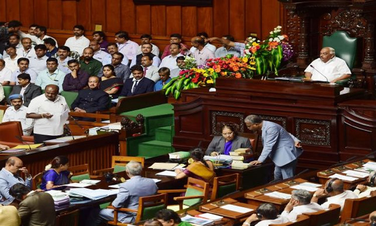 कर्नाटक में जारी सियासी घमासान का फिलहाल कोई हल निकलता नहीं दिख रहा है। उम्मीद थी कि शुक्रवार को विधानसभा में विश्वासमत के बाद स्थिति साफ हो जायेगी, लेकिन ऐसा नहीं हुआ। विश्वासमत हासिल करने की प्रक्रिया पूरी नहीं हो सकी और विधानसभा की कार्यवाही सोमवार तक के लिए स्थगित कर दी गई। विधानसभा अध्यक्ष के आर रमेश ने मुख्यमंत्री एच डी कुमारस्वामी से राज्य सरकार के प्रति विश्वास मत प्रस्ताव पर दूसरे दिन चर्चा जारी रखने को कहा। कुमारस्वामी ने आरोप लगाया कि भारतीय जनता पार्टी उनकी सरकार को अस्थिर करने में लगी है। इस बीच राज्यपाल वजुभाईवाला ने एक और पत्र लिखकर शुक्रवार को विश्वास मत हासिल करने को कहा। उन्होंने बताया कि विधायकों की खरीद फरोख्त की कई शिकायतें उन्हें मिली हैं। इन सबके बीच सदन में दोनों पक्षों के बीच हंगामा होता रहा।विधानसभा में चले इस सियासी नाटक के बीच मुख्यमंत्री कुमारस्वामी ने सुप्रीम कोर्ट याचिका दाखिल कर सवाल उठाया है कि सदन में विश्वास मत प्रस्ताव पर चर्चा के दौरान राज्यपाल कैसे निर्देश दे सकते हैं। कुमारस्वामी ने उच्चतम न्यायालय से उसके 17 जुलाई के आदेश के बारे में स्पष्टीकरण मांगा है, जिसमें कोर्ट ने कहा था कि बागी विधायकों को विश्वास मत के दौरान सदन की कार्यवाही में भाग लेने के लिए बाध्य नहीं किया जा सकता है।