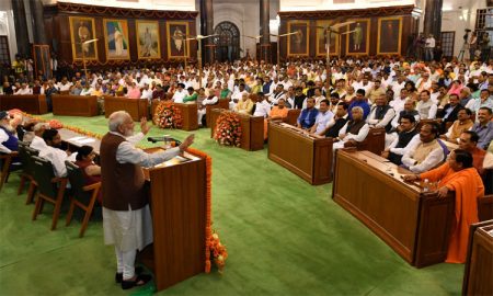 नरेंद्र मोदी को शनिवार को भाजपा नीत राष्ट्रीय जनतांत्रिक गठबंधन का नेता सर्वसम्मति से चुन लिया गया. संसद के केंद्रीय कक्ष में...